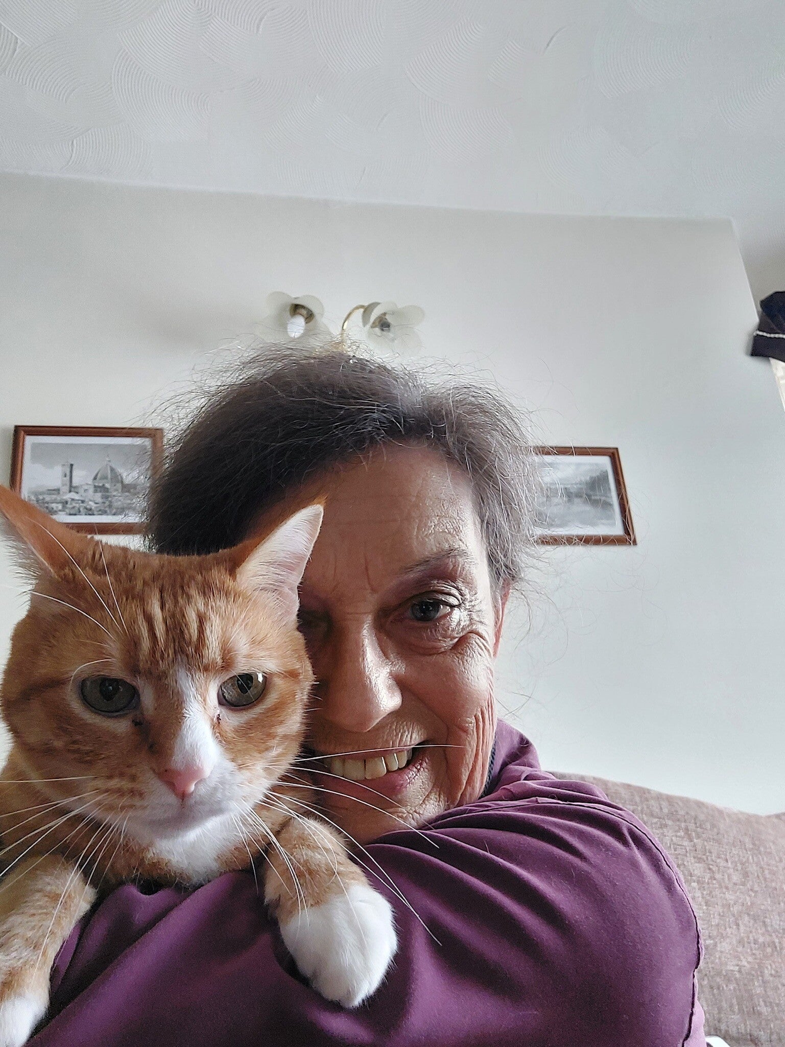 'Miami' after Tintin I began working with the Spanish rescue, bringing cats over to be rehomed in the UK. We brought Miami's kittens over, they thought she was feral then one day she came to a volunteer who grabbed her and took her to the vets. Her age was estimated to be around 12, our plan was to bring her over and live as a semi feral in a stable business I had found. 4 days after she arrived she decided she liked being in a nice warm house, jumped on my lap demanding to be stroked! She's 18 now and loving life.